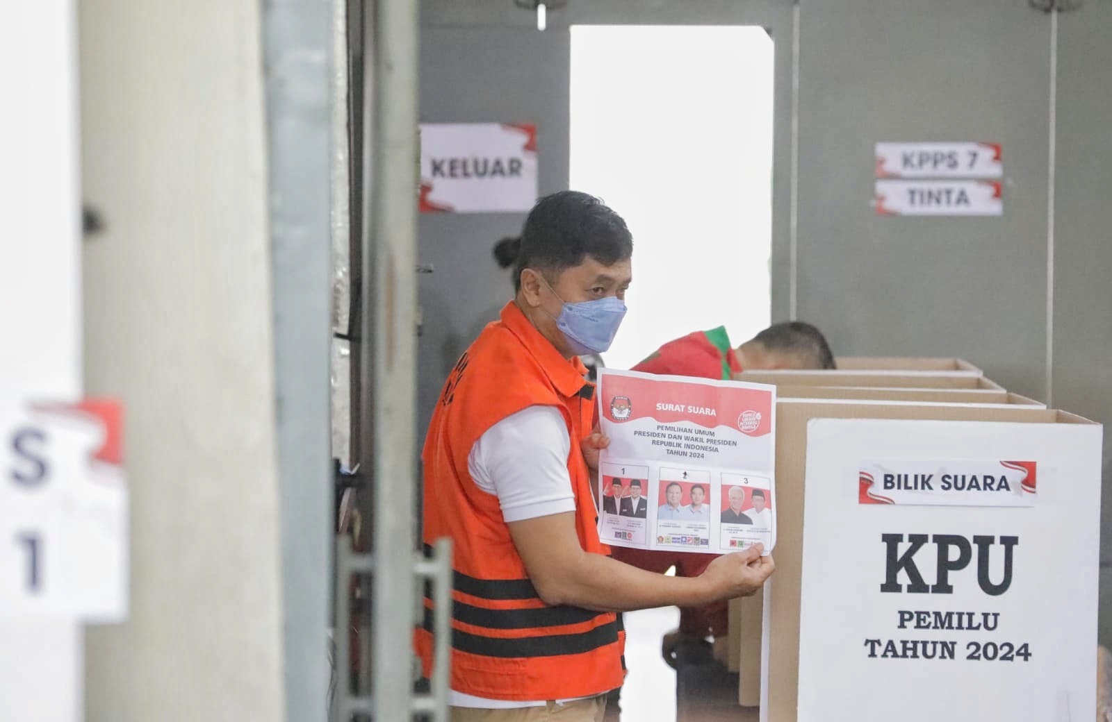 Pemungutan suara atau pencoblosan dilakukan di dua lokasi khusus Tempat Pemungutan Suara (TPS), yakni Rumah Tahanan Negara (Rutan) Gedung Merah Putih KPK dan Rutan Puspomal, Jakarta pada Rabu (14/2/2024).