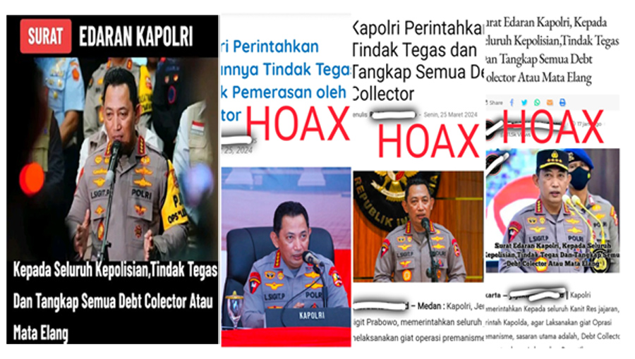 Jakarta, Kabariku- Viral di sejumlah situs yang memuat surat edaran mengatasnamakan Kapolri Jenderal Pol Drs. Listto Sigit Prabowo, M.Si., terkait dengan penindakan terhadap debt collector. Judul yang mencolok di situs tersebut menyebutkan “Surat Edaran Kapolri, Kepada Seluruh Kepolisian, Tindak Tegas dan Tangkap Semua Dept Collector atau Mata Elang”.