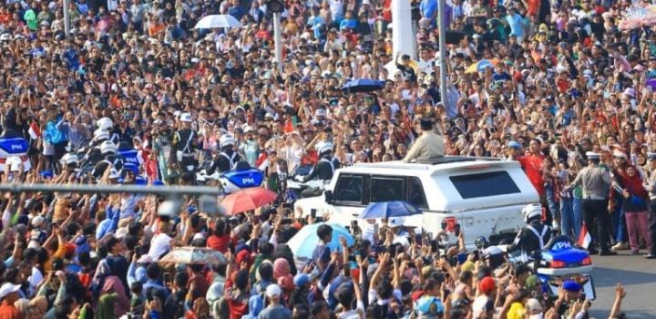 Sambut Presiden Prabowo dalam Rangkaian Kebesaran HUT ke-80 TNI, Masyarakat Padati Jalan dari Istana Merdeka ke Monas