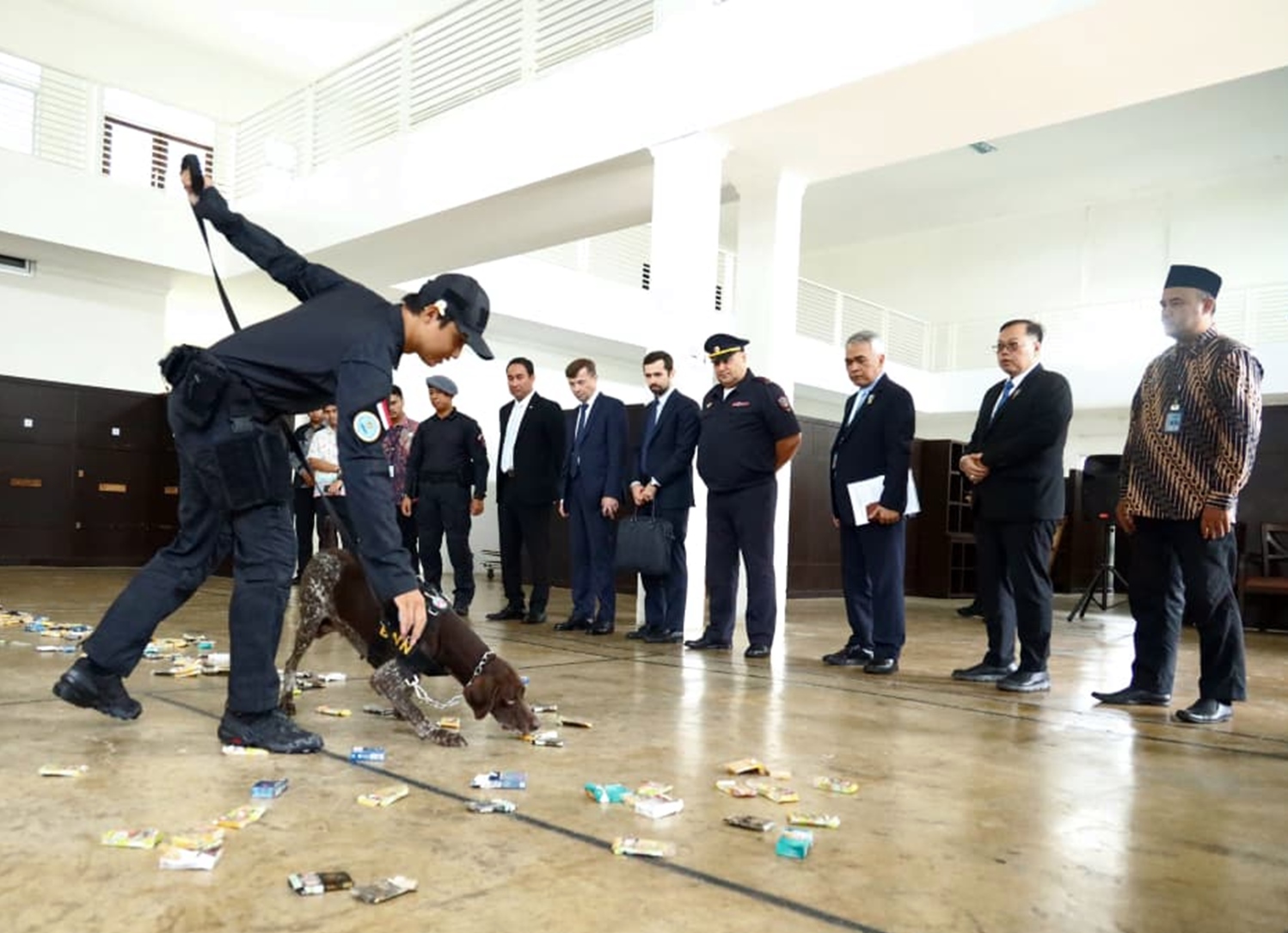 Kunjungan berlanjut ke Fasilitas K9 Handler BNN untuk menyaksikan demonstrasi kemampuan anjing pelacak dalam mendeteksi narkotika. Delegasi mengapresiasi profesionalisme tim K9 serta teknologi pendukung yang digunakan dalam operasi.