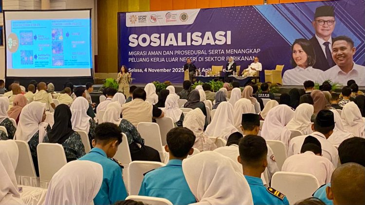 Sosialisasi Migrasi Aman dan Prosedural serta Menangkap Peluang Kerja Luar Negeri di Sektor Perikanan di hadiri para mahasiswa dan ratusan pelajar Sekolah Menengah Kejuruan (SMK) dari wilayah Cirebon.