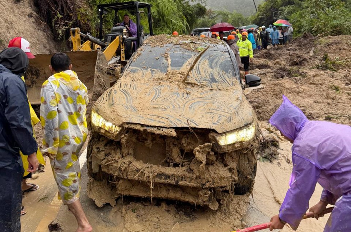 “Empat mobil bisa mundur dan keluar dari lokasi, satu mobil tertimpa longsor dan rusak berat,” ungkapnya.