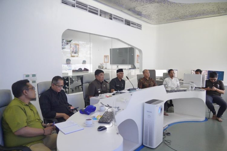 Bupati Garut, Abdusy Syakur Amin, menghadiri acara Rapat Koordinasi terkait Penyaluran Bantuan Pangan dan Penyaluran Bantuan Langsung Tunai Sementara Kesejahteraan Rakyat (BLTS Kesra) secara daring, yang dilaksanakan di Command Center Garut, Kecamatan Garut Kota, Jum’at (21/11/2025).