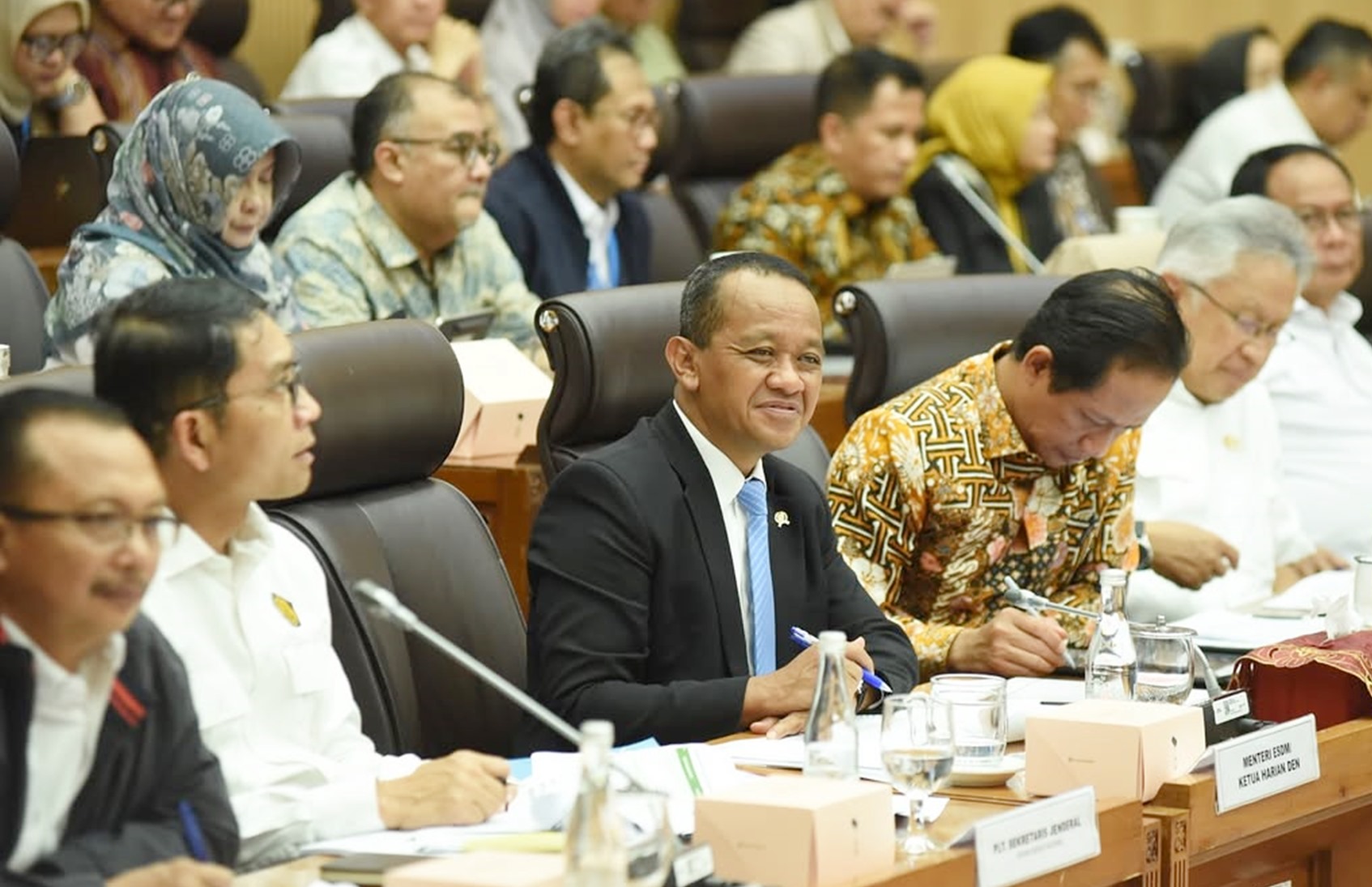 Bahlil Lahadalia yang mendengar ucapan itu hanya tersenyum sambil menggelengkan kepala, menandakan candaan tersebut diterima dengan santai.