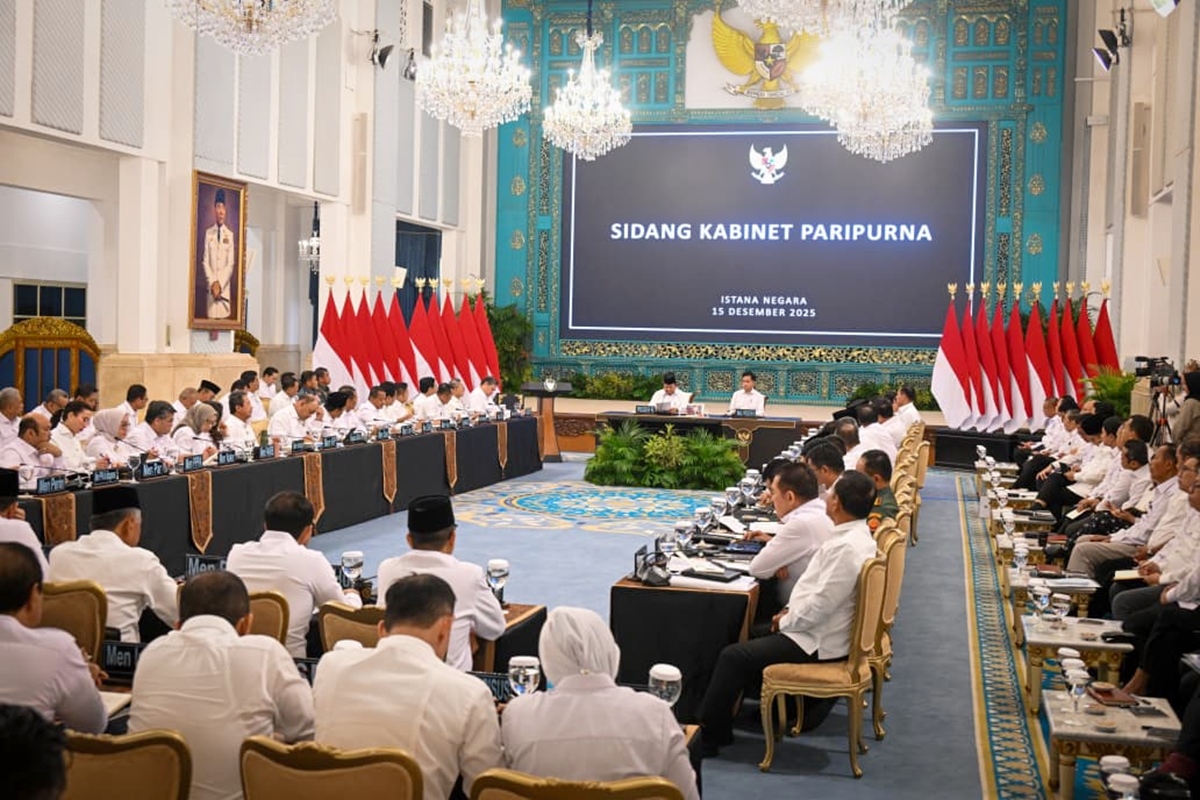 Jakarta, Kabariku -Presiden Republik Indonesia Prabowo Subianto didampingi Wakil Presiden Gibran Rakabuming Raka memimpin Sidang Kabinet Paripurna di Istana Negara, Jakarta, Senin (15/12/2025).