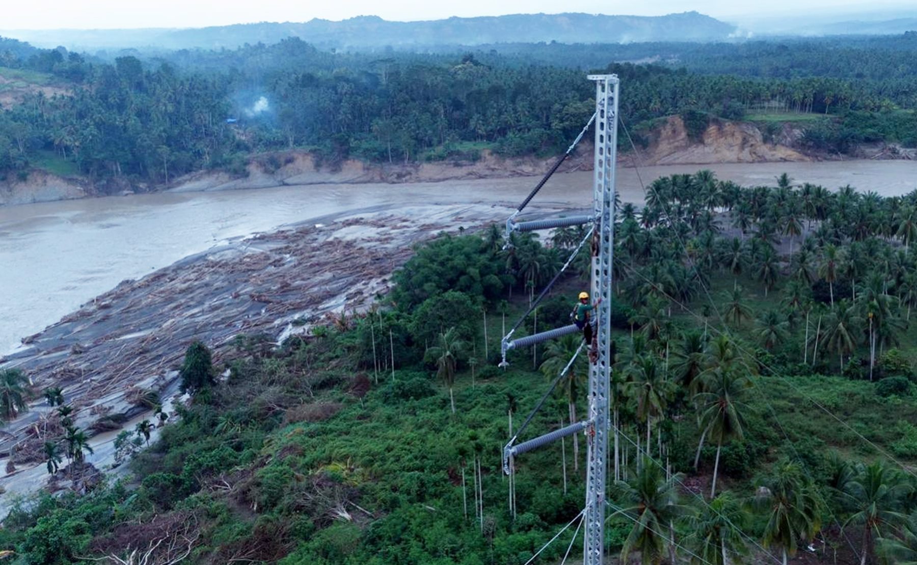 “Material untuk perbaikan tower seberat 35 ton terpaksa diangkut menggunakan heli, satu persatu, satu persatu,” ujar Darmawan.