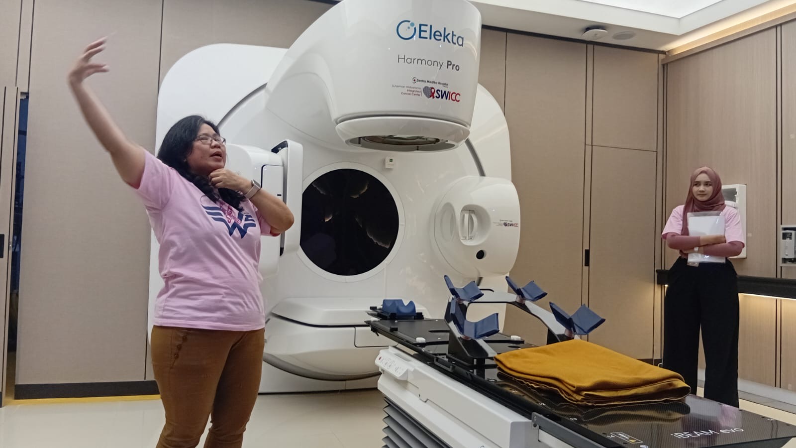 SWICC menerapkan konsep One Stop Cancer Care yang memungkinkan pasien memperoleh layanan terintegrasi sejak tahap skrining hingga terapi lanjutan. Dokter spesialis bedah onkologi SWICC Dr. dr. M. Yadi Permana, Sp.B(K)Onk menyampaikan, “Fasilitas radioterapi di SWICC telah dilengkapi teknologi modern seperti LINAC Harmony Pro, Brachytherapy Flexitron, dan CT-Simulator 64 Slices yang didukung tim multidisiplin.”