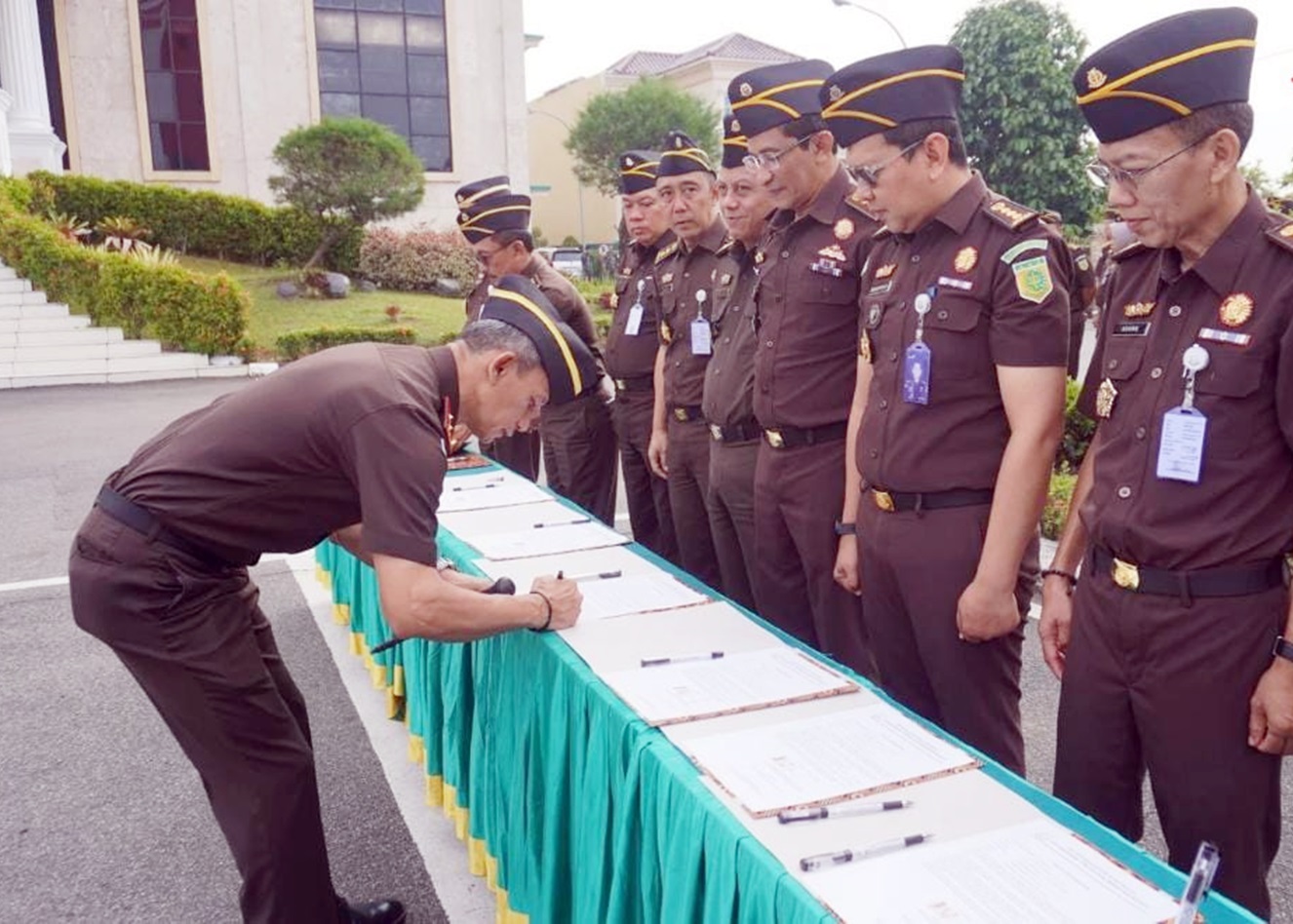Rangkaian kegiatan diawali dengan apel bersama, dilanjutkan penandatanganan Pakta Integritas dan Komitmen Bersama yang diawali oleh Kajati sebagai role model pembangunan Zona Integritas.