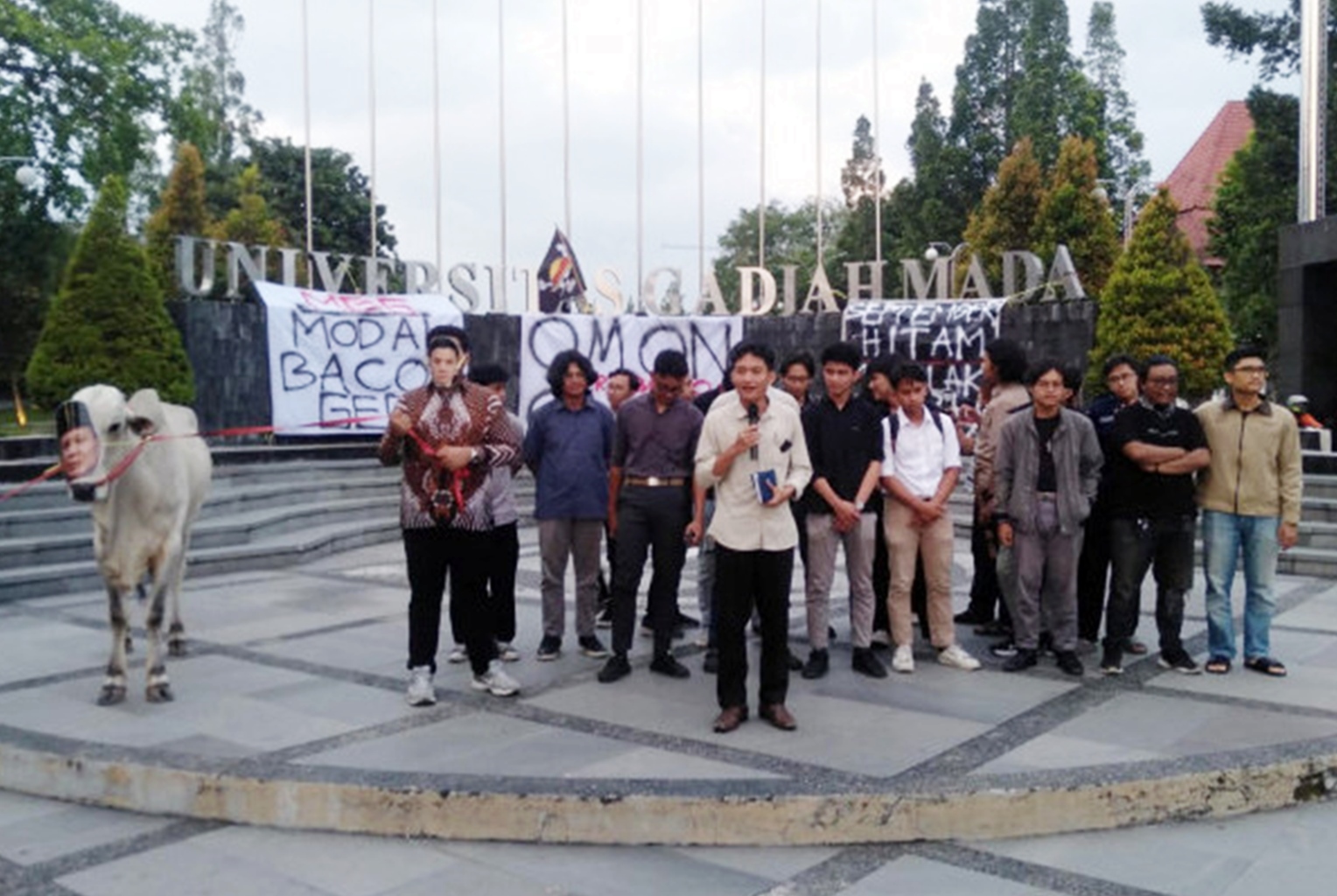 Sebelumnya, BEM UGM juga mengkritik MBG melalui aksi simbolik pada 24 September 2025 di Sleman, Yogyakarta. Mereka menghadirkan seekor sapi dengan kepala ditempeli foto Presiden Prabowo, menuding MBG menimbulkan ribuan kasus keracunan dan mengganggu hak anak atas pendidikan.