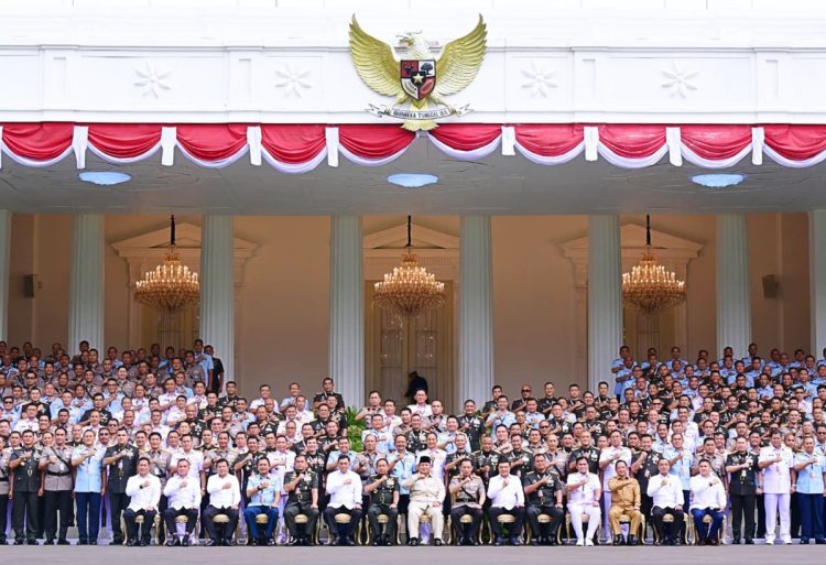 Dalam arahannya, Presiden turut mengapresiasi peran TNI–Polri dalam mengawal dan mendukung pelaksanaan program strategis pemerintah di berbagai sektor.