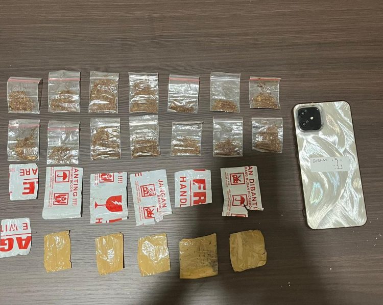 Dari tangan pelaku, petugas mengamankan sejumlah barang bukti berupa 14 paket diduga narkotika jenis tembakau sintetis yang dikemas dalam plastik klip dan dililit lakban, satu unit sepeda motor, satu unit handphone, serta bukti percakapan melalui aplikasi pesan.