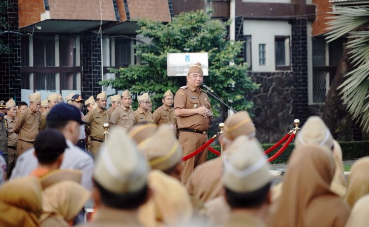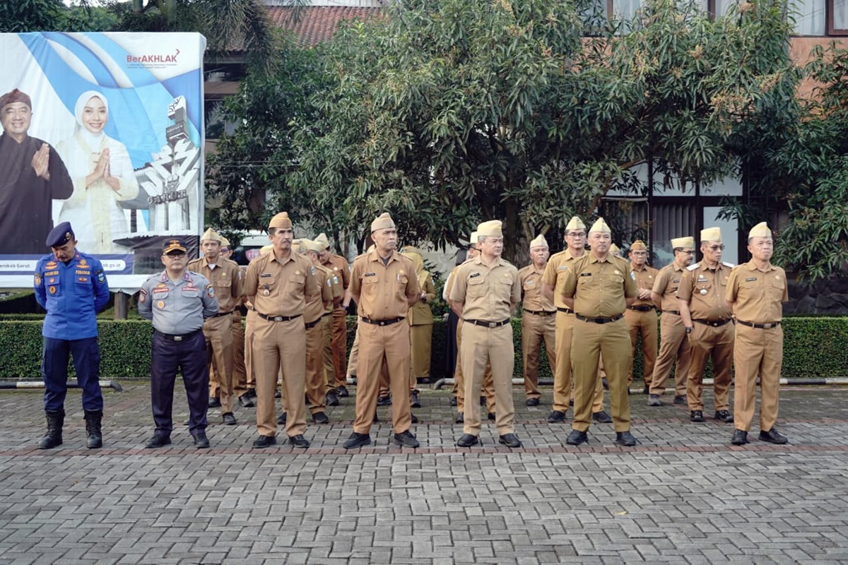Instruksi tersebut disampaikan saat memimpin apel gabungan di Lapangan Sekretariat Daerah (Setda) Garut, Kecamatan Tarogong Kidul, Senin (9/3/2026).