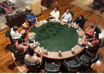 Presiden Prabowo Subianto menerima Ketua MPR RI Ahmad Muzani beserta sejumlah jajaran menteri Kabinet Merah Putih di kediaman pribadinya di...